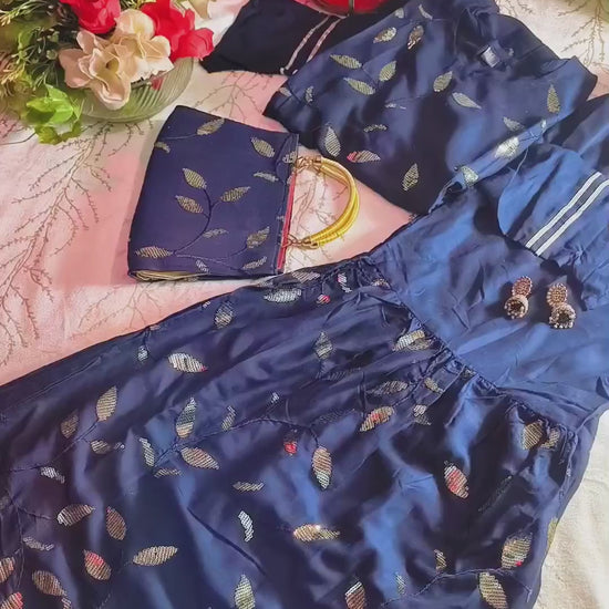 Beautiful Royal Blue Heavy sequence work cotton party wear sharara suit with matching purse.