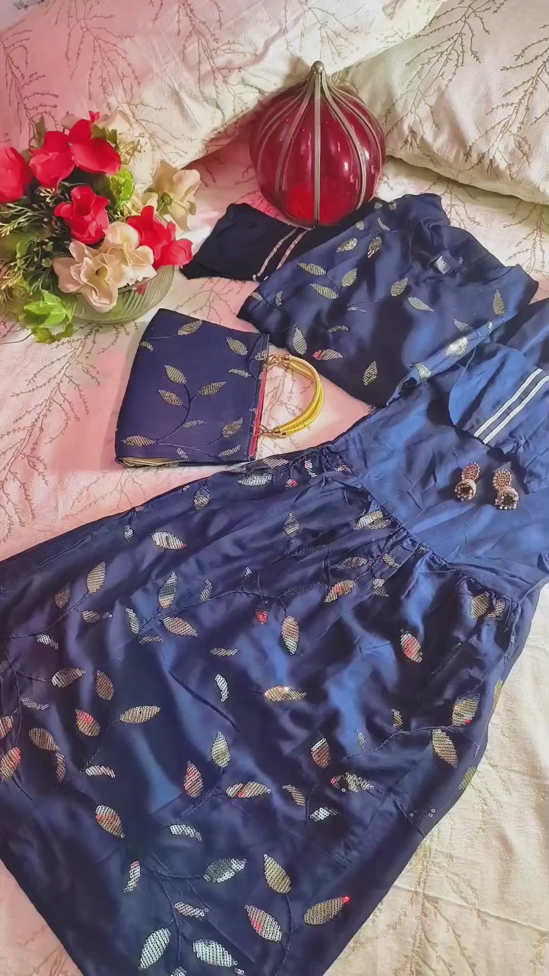 Beautiful Heavy sequence work party wear sharara suit with matching purse.