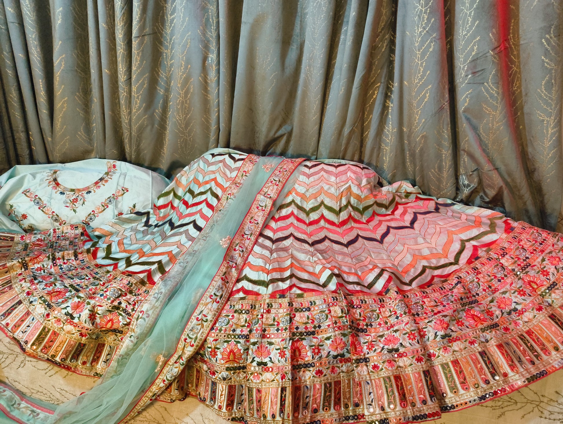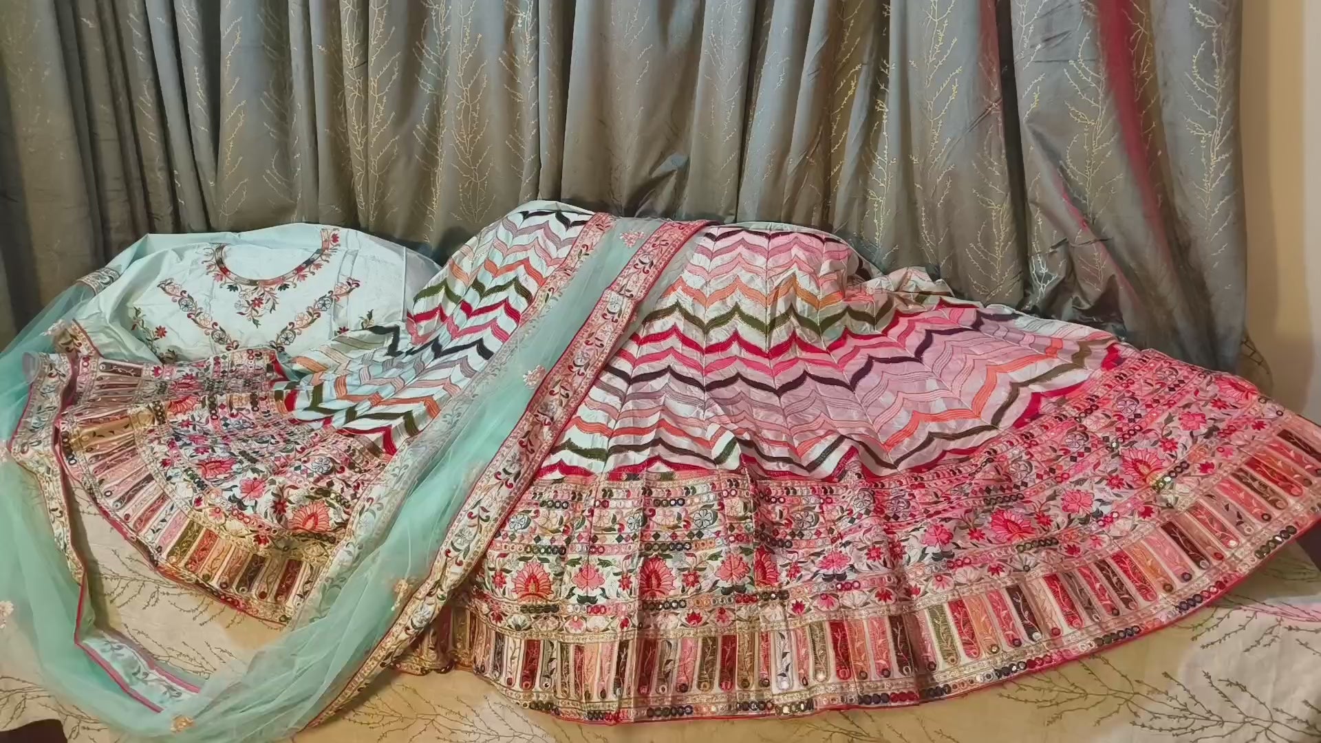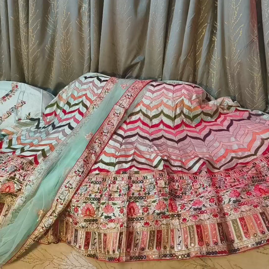 Bollywood Inspired Beautiful Multi colour Full Flair Heavy Embroidery Lehnga with Heavy lace dupatta and Blouse piece. With cancan